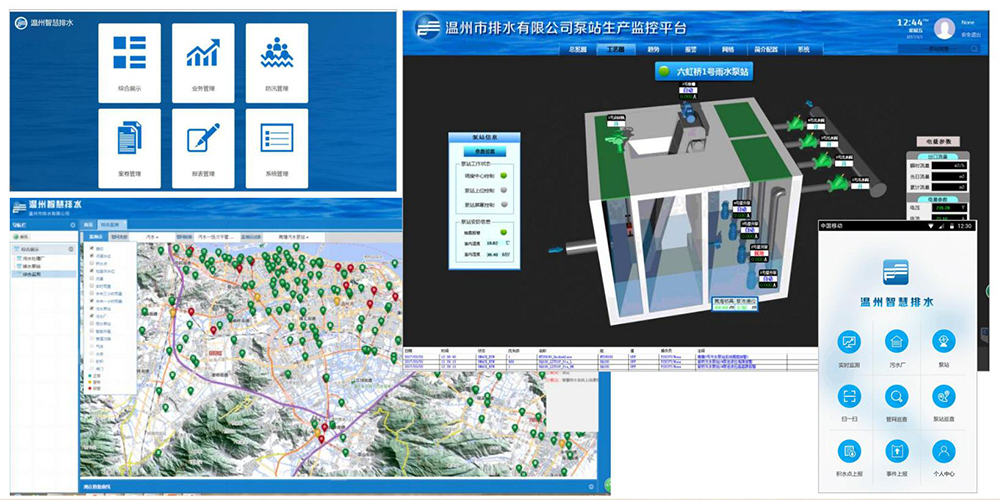 簡介:“智慧排水系統”服務于溫州市400多公里排水管網、76個泵站、四座污水處理廠運營及管理情況。利用物聯網、互聯網技術,全方位集成網、廠、站等排水設施及水情、雨情等實時監測數據,統一平臺可視化展示,方便集團調度與管理。